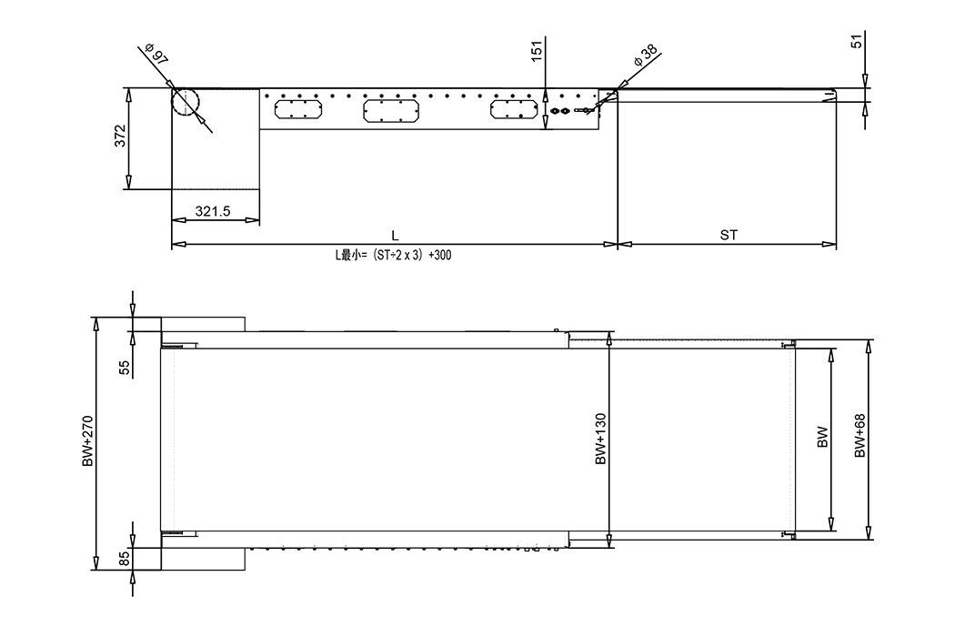 Rzeczywisty wymiar paska jest zawężony 5 mm niż wynosi standardowy pas; LF Długość maszyny przekracza 4 m zwężone 10 mm.