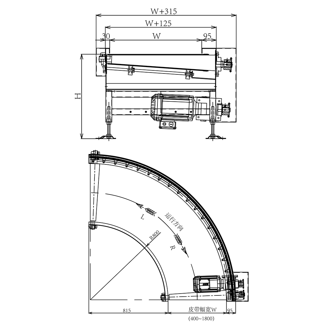 Maszyna obracająca taśmę obrotową jest powszechnym sprzętem do przenoszenia, głównie używanym do przenoszenia materiałów z jednej linii przenośnika pasa do kolejnego 90 stopni lub 180 stopni przenośnika odwracającego pasa. Składa się z komponentów, takich jak pasy, ramy, wałki napędowe, rolek, palety zawierające obciążenie, rolki powrotne i urządzenia napinające. Materiał przenośnika pasa obracającej pasa obejmuje różne materiały, takie jak PVC, PU, PVK itp. Oprócz tego, że jest używany do przekazywania zwykłych materiałów, może również spełniać transport materiałów o specjalnych wymaganiach, takich jak oporność na olej, kwas i oporność na korozję alkaliczną oraz przeciwstatyczne.