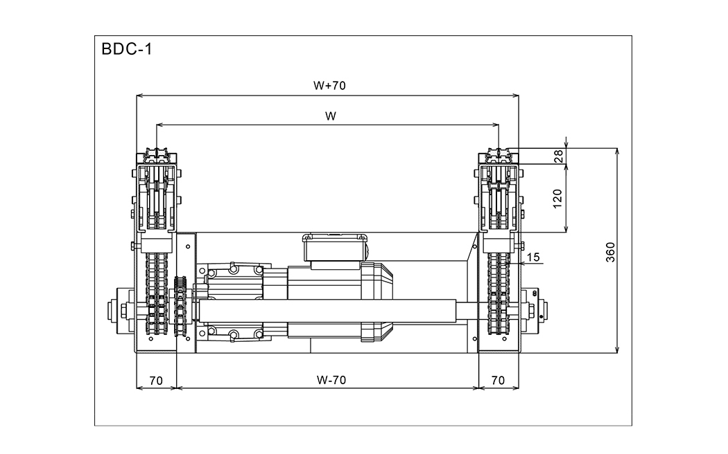 Przenośnik łańcuchowy jest wykorzystywany przede wszystkim do transportu palet i dużych skrzyn. Standardowy przenośnik łańcucha z Wuxi Huiqian wykorzystuje podwójny europejski łańcuch rollerowy 10B-2, odpowiedni do ciężkich obciążeń od 500 do 3000 kg.