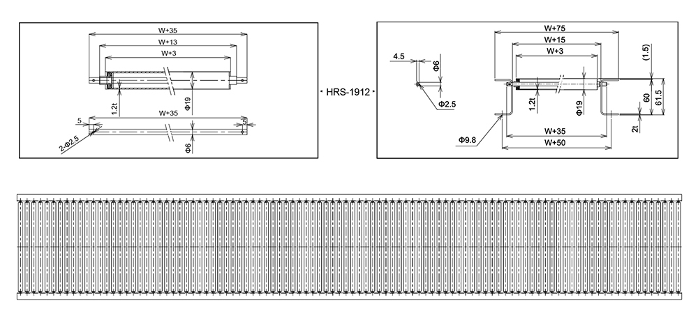| Szerokość przenośnika W 75 (mm) | 175 | 275 | 375 | 475 | 575 | 675 | 775 | 875 | |