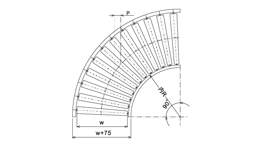 Znany również jako przenośnik rolki krzywej, przenośnik rolka stożkowy pozwala na kąty skrętu 30, 45, 60, 90 i 180 stopni. Służy głównie do zmian kierunków w liniach przenośników, z 30, 45 i 60 stopni często stosowanymi do rozgałęzienia i łączenia przenośników. Ten przenośnik ma lekki typ z pojemnością obciążenia, ogólnie nieprzekraczającym 200 kg.