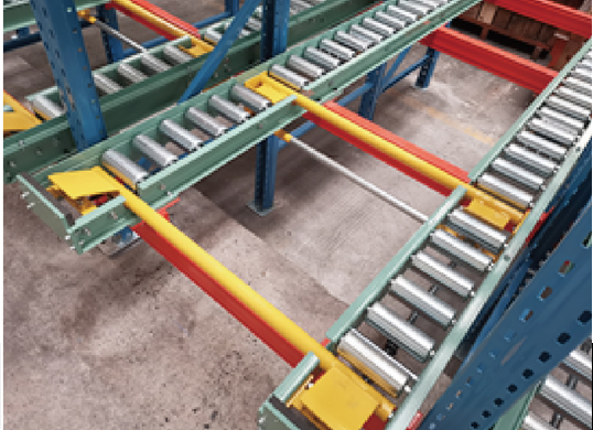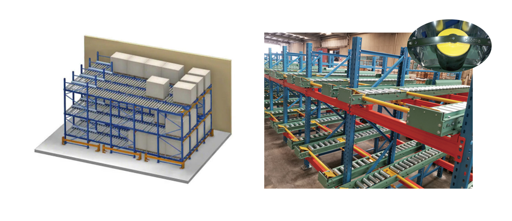 Półki typu grawitacyjnego i półki wałka przesuwane mają konstrukcję podobną do półek typu wiązki, ale na belkach półek instalowanych jest nieokreślone ścieżki wałków, a kąt nachylenia ścieżek wałków wynosi ogólnie 2-5 °. Półki grawitacyjne wykorzystują ten kąt pochylenia i ciężar samych towarów, aby automatycznie przesuwać się z wysokiego do niskiego. Półki grawitacyjne są odpowiednie do produktów In, Out i wysokiego przepływu. Ich głównymi cechami są wysokie wykorzystanie przestrzeni, a półka nie wymaga energii zewnętrznej. Są one szczególnie odpowiednie do zarządzania dużymi magazynami, takimi jak centra dystrybucji chłodni i logistyki, i mogą być obsługiwane przez zwykłe zrównoważone wózki widłowe.