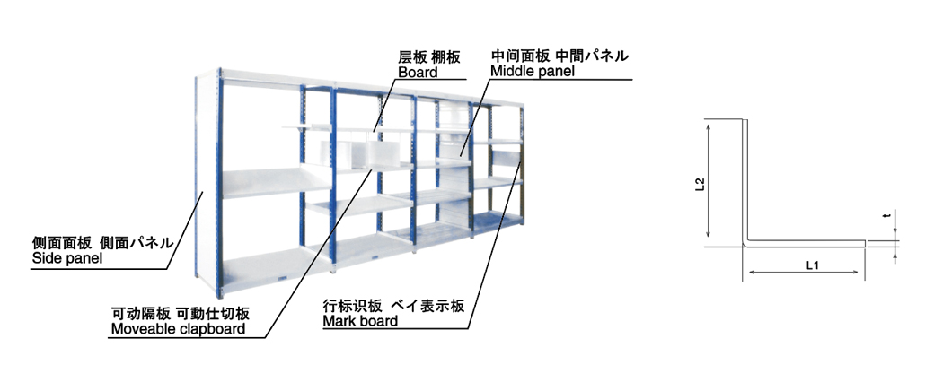 Średnie stojak na przechowywanie wielu różnorodności i kilku ilości towarów. Średnia stojak na przechowywanie towarów w...