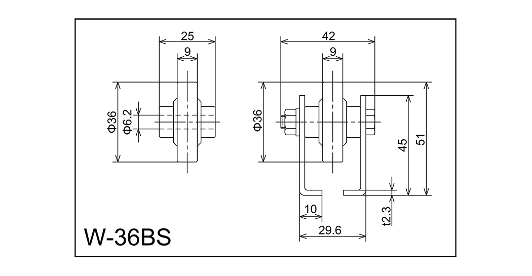 | W-36BS | 36x9x6.2x25 | M6x38L | 45x29.6x10x42x2.3 | 51 | 1000 · 2000 · 3000 | 50,75 · 100 · 150 | 40 | A |