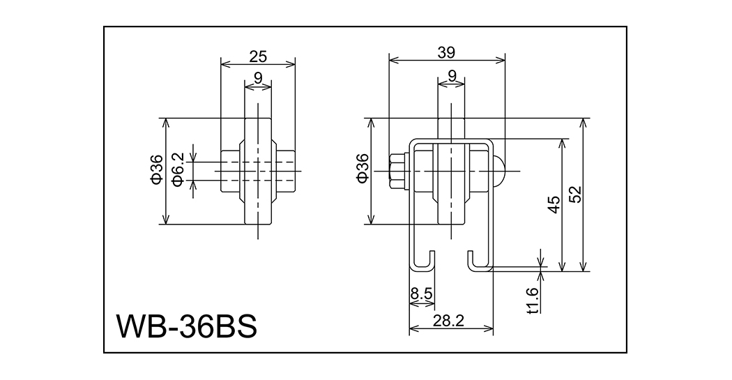 | WB-36BS | 36x9x6.2x25 | M6x35L | 45x28.2x8.5x39x1.6 | 52 | 1000 · 2000 · 3000 | 50,75 · 100 | 40 | mi |
