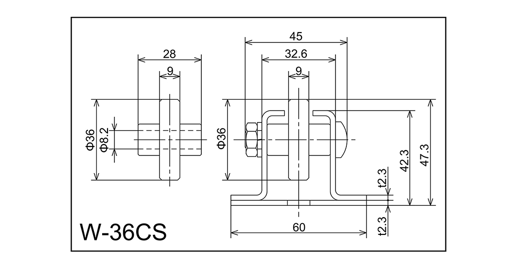 | W-36CS | 36x9x8.2x28 | M8x40L | 42.3x60x32.6x45x2.3 | 47.3 | 1000 · 2000 · 3000 | 50,75 · 100 · 150 | 40 | J |