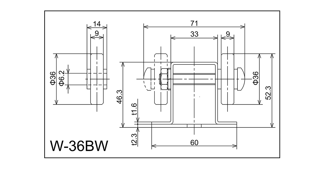 | W-36BW | 36x9x8.2x14 | M8x55l | 46,3 × 60 × 33 × 71 × 2: 3 | 52.3 | 1000 · 2000 · 3000 | 50,75 · 100 · 150 | 40 | K |