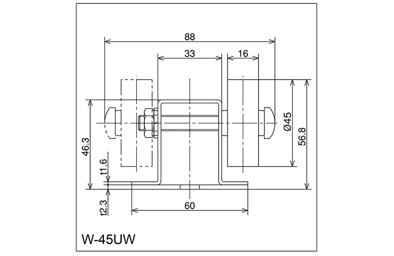 | W-45UW | 45 × 16 × 8 × 22 | M8 × 65L | 46,3 × 60 × 33 × 87 × 1.6 2.3 | 56.8 | 1800 · 2400 · 3000 | 50,75 · 100 · 150 | 25 | ABS |