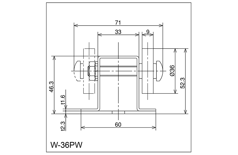| W-36PW | 36 × 9 × 8 × 14 | M8 × 55L | 46,3 × 60 × 33 × 71 × 1.6 2.3 | 52.3 | 1800 · 2400 · 3000 | 50,75 · 100 · 150 | 10 | Pom |