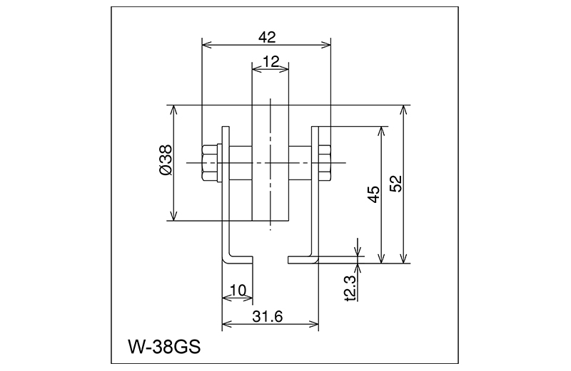 | W-38GS | 38 × 12 × 6 × 27 | M6 × 38L | 45 × 32,6 × 10 × 42 × 2.3 | 52 | 1800 · 2400 · 3000 | 50,75 · 100 · 150 | 30 | POM |