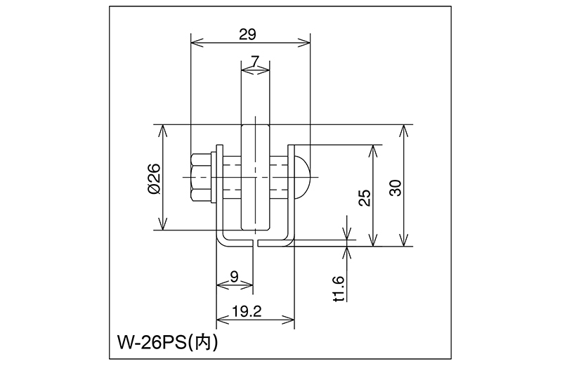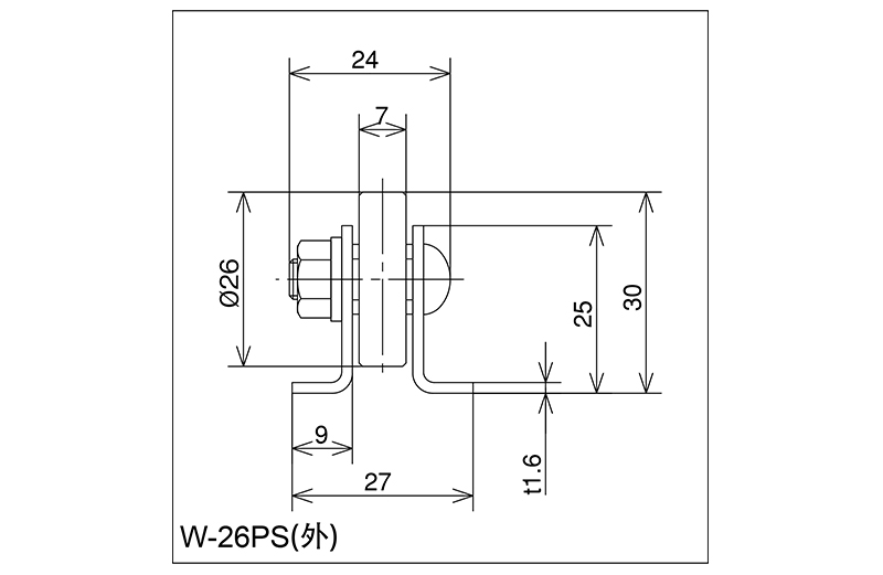 | W-26PS (wewnątrz) | 26 × 8 × 6 × 16 | M6 × 25L | 25 × 19,2 × 9 × 29 × 1,6 | 30 | 1000 · 1500 · 2000 | 30 · 35 | 30 | POM |